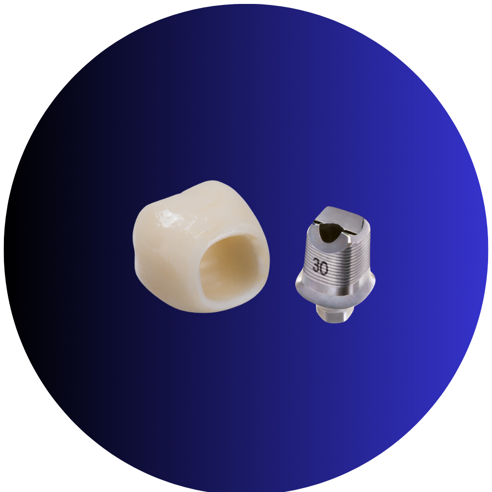 • Cemented to the abutment for a smooth, natural emergence profile with no access hole.